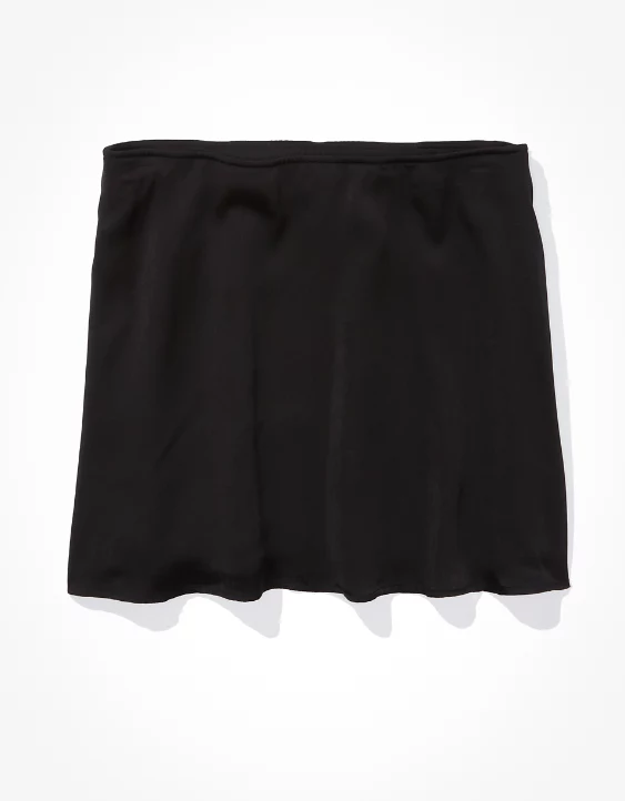 An easy high-waisted mini skirt, made with soft satin fabric and a sleek Skater silhouette.