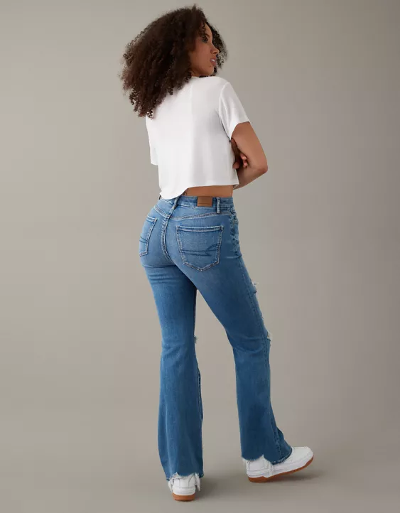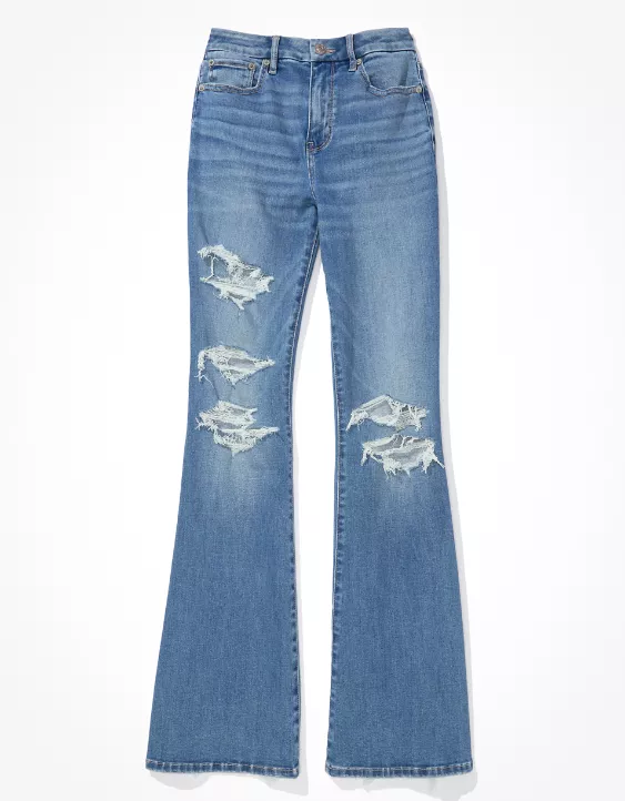 AE Stretch Curvy Ripped Super High-Waisted Flare Jean