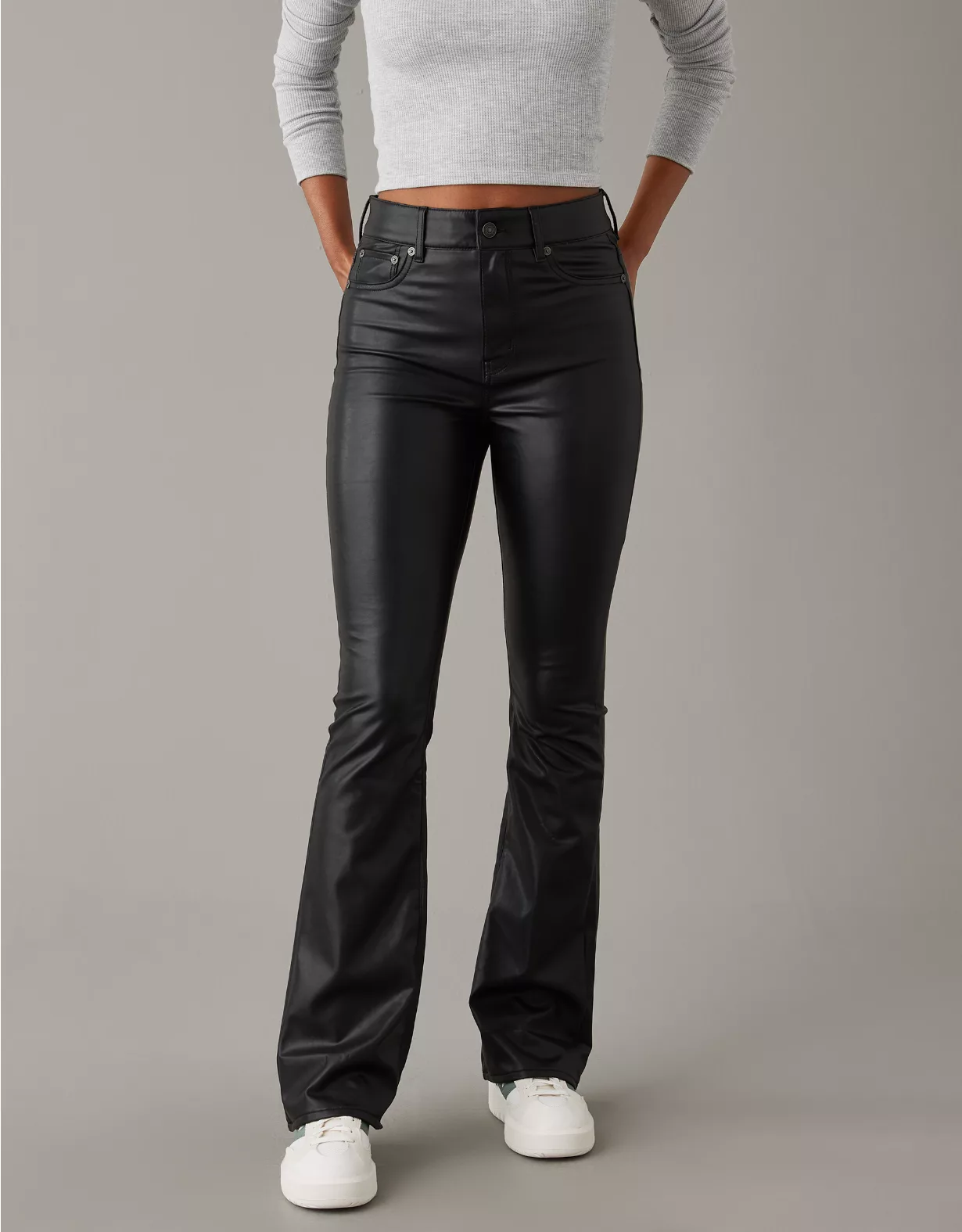 AE Stretch Vegan Leather Super High-Waisted Kick Boot Pant