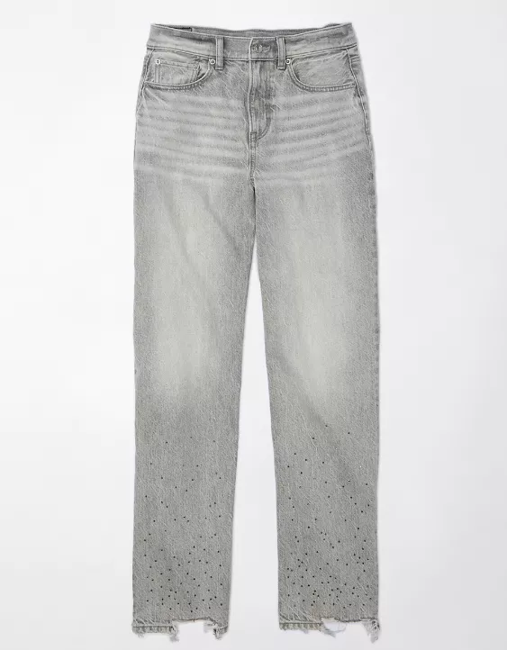 AE Strigid Super High-Waisted Baggy Straight Embellished Jean